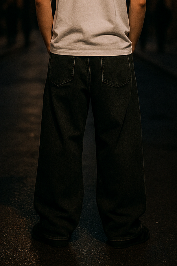 Designed with an oversized fit and wide-leg silhouette, this piece embodies a bold, fashion-forward look inspired by contemporary streetwear and vintage classics. The relaxed cut allows for freedom of movement while creating a statement style that stands out in any outfit.